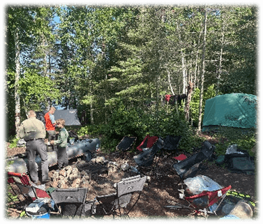 On Friday, July 11, 2025, seven fathers and seven sons including two guides, one bringing his son, arrived at Whetstone Ministries near Ely, Minnesota to spend the next seven days in the Boundary Waters Canoe Area (BWCA). Because of federal wilderness area rules, the maximum size allowed for a group is limited to nine people; therefore, the Company of 14 strong was split into two platoons. The North Platoon consisted of Captains Dan Otis and Glen Larson with Warrant Officer Nick Oelke and his two sons, Micah and Isaac, plus Thomas Fuhrman as the guide, all from Minnesota. The South Platoon consisted of Maj. Michael Smith with grandson Declan Kelley from Texas, 2nd Lt. Erick Marshall with three sons, Brian, Collin, and James from Oklahoma, plus John Townsend with son Walter from Ely.
