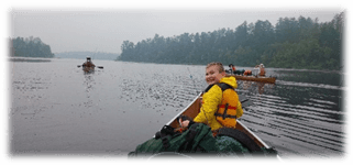 Early on Saturday, July 12, the North Platoon was transported to their put in point on Fall Lake and paddled north to Newton Falls, where they portaged to Newton Lake. Continuing north, to Pipestone Falls, they portaged again to Pipestone Bay and then onto Basswood Lake and international waters. They set up camp on Basswood Falls after traveling 13 miles that first day.