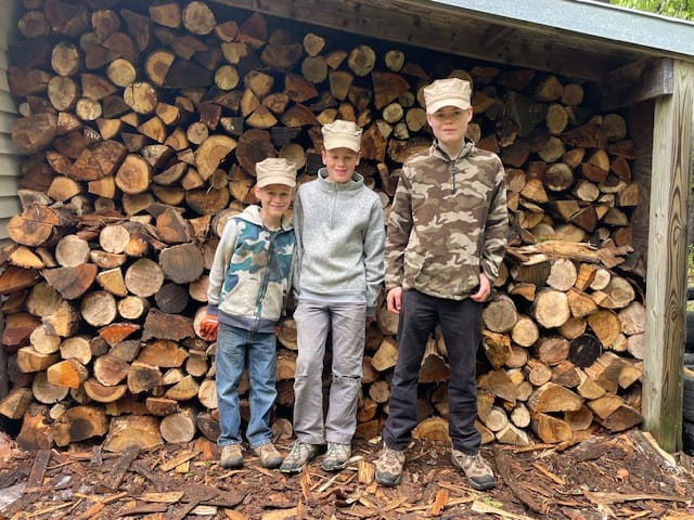 Our Friday service projects consisted of installing a shower, taping and mudding drywall, bucking logs, and splitting, transporting, and stacking firewood. It takes great teamwork to safely and efficiently move firewood from a pile on the ground to a neat stack in a shed or garage.