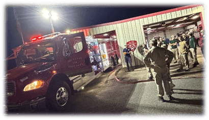 As a special event, the Big Sandy Fire Dept. gave an outstanding tour, reviewing all their specialized equipment and vehicles.  The pump truck was rolled out and a hose deployed, giving each cadet and father the opportunity to man the nozzle as it sprayed water.